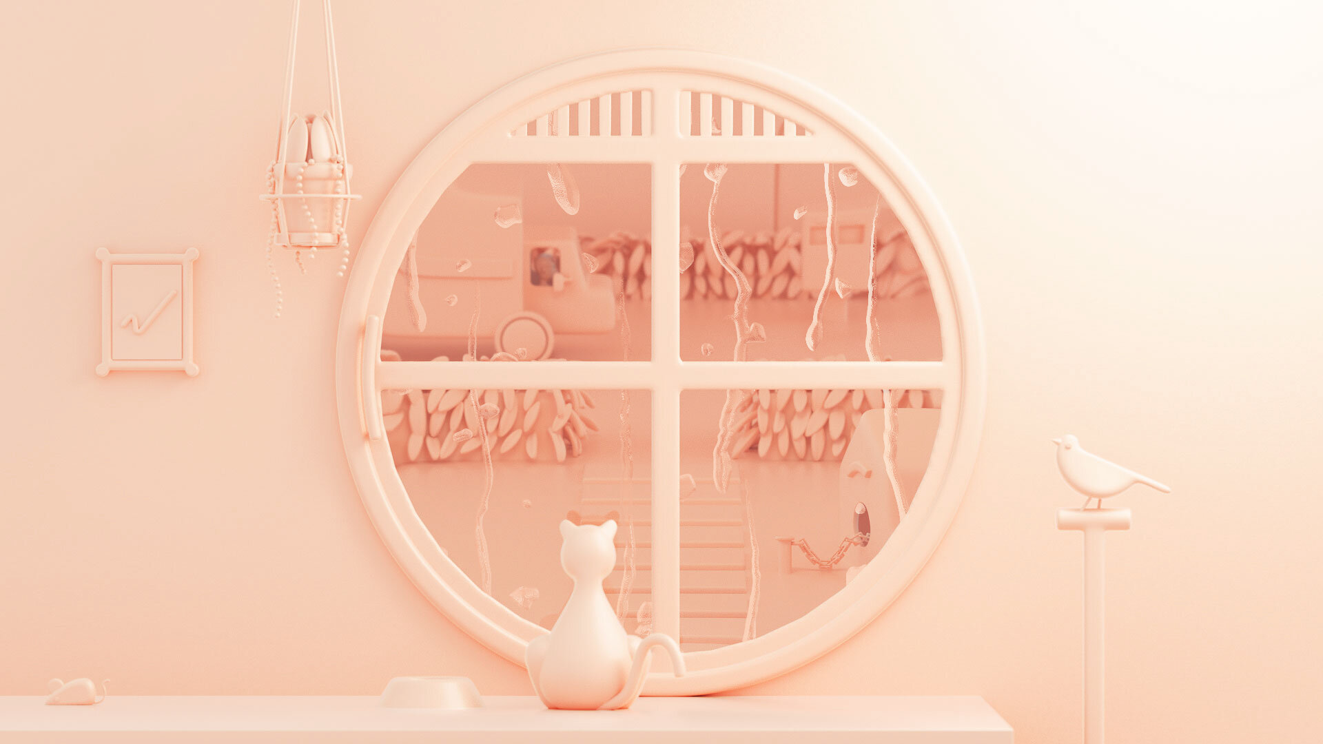 スタイライズドなモデルで表現。色はモノトーンにして、現実から離れています。
