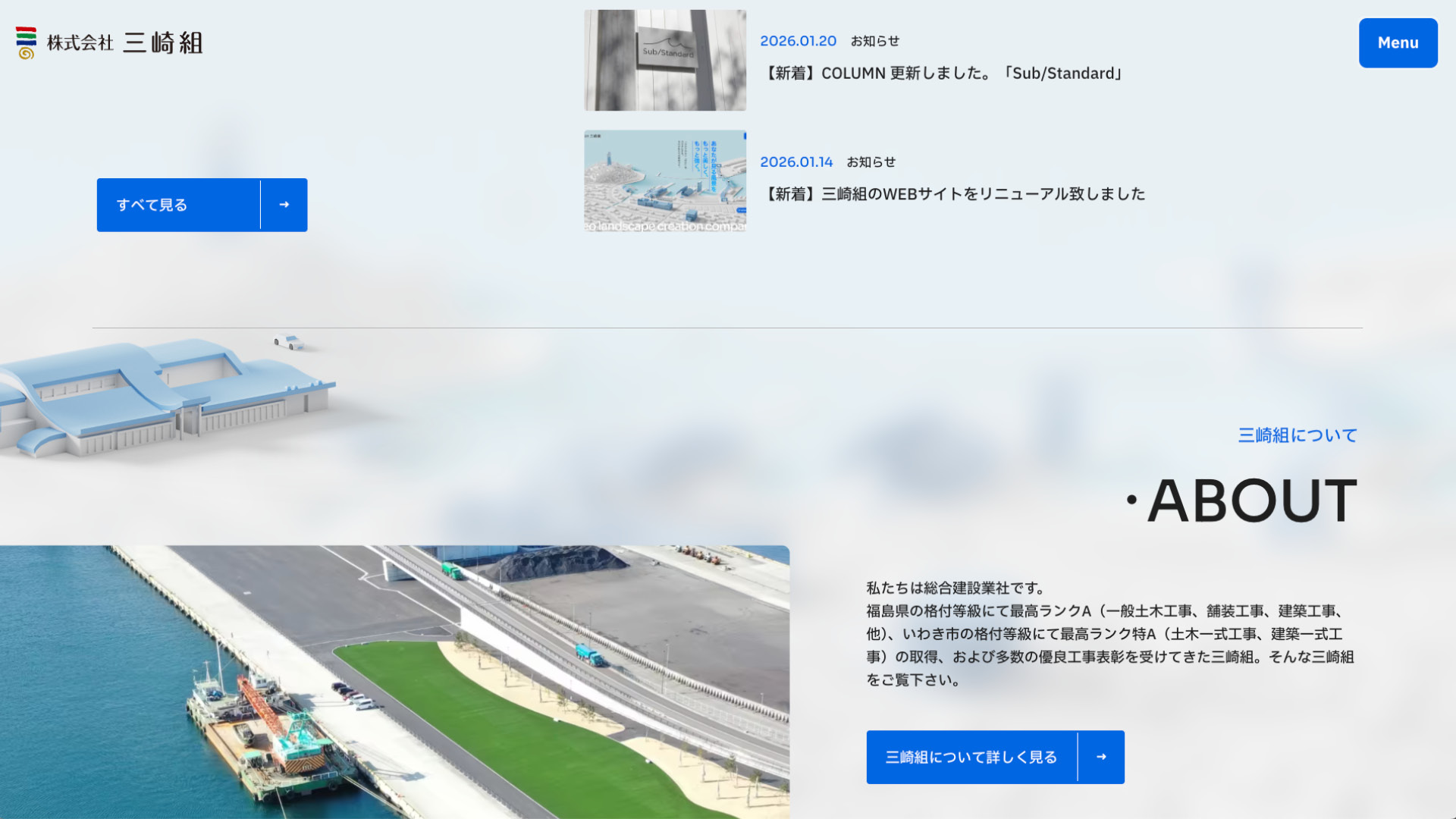 株式会社三崎組のウェブサイトキービジュアルを制作しました。