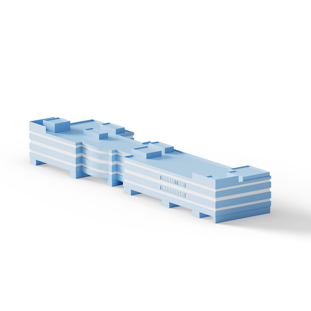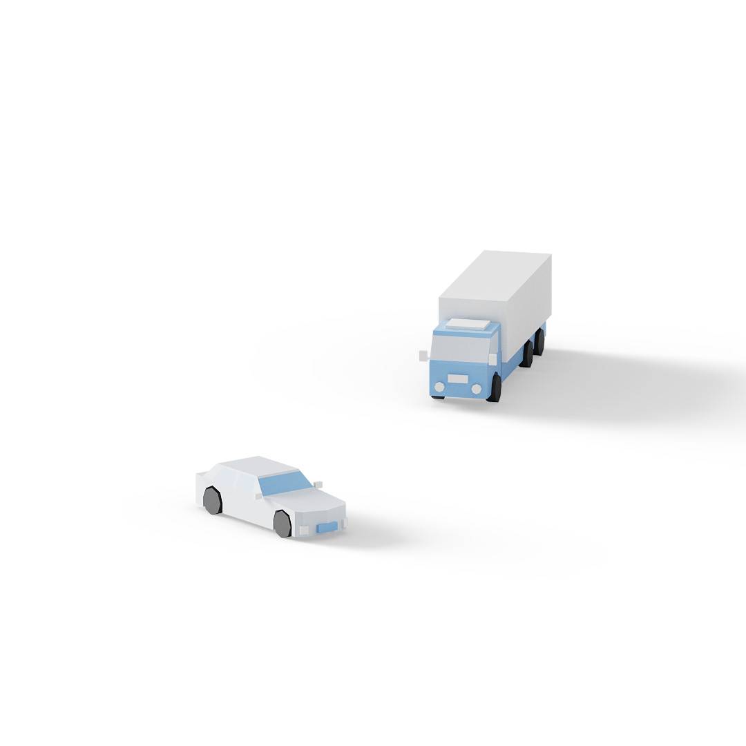 全体的に色数を少なく、落ち着いたトーンでいわき市と東京を抽象化したローポリゴンの街を制作。