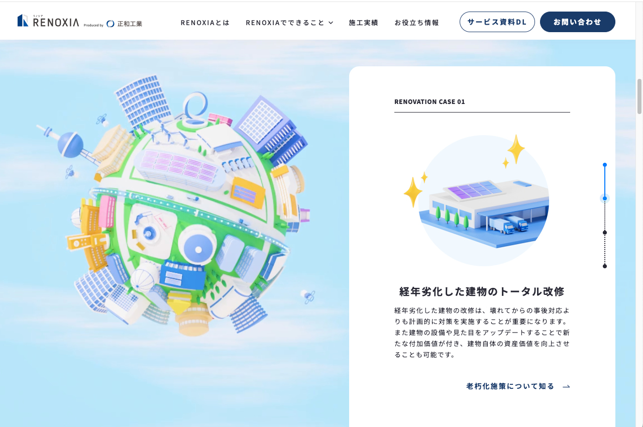 RENOXIAのウェブサイトのキービジュアルとアニメーション制作。